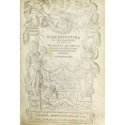 Note: USTC 808306. First quarto edition of Cosimo Bartoli's Italian translation. The woodcuts are reversed copies of the folio editions of 1550 and 1565. Alberti's celebrated ten books on the theory of classical architecture (first published in Latin in 1485) became famous through the vernacular translations of the 16th century. The new dedication to Cosimo de' Medici explains the need for a further edition due to the great demand for copies of the Florence 1550 folio imprint.