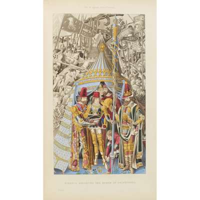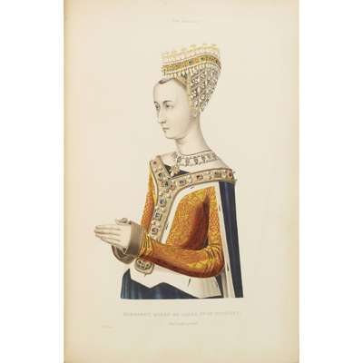 London: William Pickering, 1843. 2 volumes, 4to, 94 coloured plates, some finished by hand & heightened with gum arabic, many coloured historiated initials & illustrations in text, contemporary panelled green morocco gilt by J. Wright, rubbed