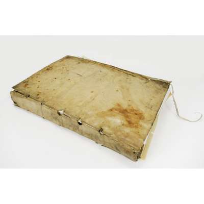 Paris: Fédéric Morel, 1567. First edition, first issue, folio, with 205 large woodcuts, including 74 full-page and 7 double-page blocks; magnificent allegorical woodcut title border; large woodcut head-pieces and large woodcut initials, orginal limp vellum, ties partly still present, binding worn and upper inner and lower joints splitting, lacking the index (supplied in photocopy from the edition of 1626?), p. 8 misnumbered 9, etc., the following also supplied in photocopy, L3 &L4, O3, 04 & O6, Y5, title page a little dusty and with edges worn, tear in the inner margin of M6 and the top of the column on I4 slightly cropped due to the fact that this page was taller than the others to accommodate the column, sold with all faults