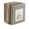 The Tailor of Gloucester. London: Frederick Warne and Co., 1903. First edition, first issue with the same endpaper repeated four times, original maroon boards, gift inscription to endpaper; The Tale of Benjamin Bunny. London: Frederick Warne and Co., 1904. First edition, (first or second printing, with "muffetees" mispelt as muffatees" on p. 15, 16mo, original grey boards, ownership signature to half-title; The Tale of Timmy Tiptoes. London: Frederick Warne and Co., 1911. First edition, (first or second printing), 16mo, original dark green boards; The Tale of Mr. Tod. London: Frederick Warne and Co., 1912. First edition, (first or second printing), 16mo, original grey boards, listed by Quinby as a variant stamped in green; The Tale of Pigling Bland. London: Frederick Warne and Co., 1913. First edition, [first or second printing], 8vo, original green boards (Quinby variant); all with some general wear and various levels of soiling (5)