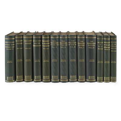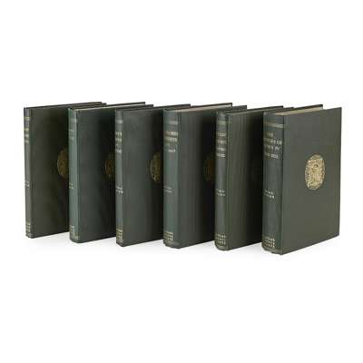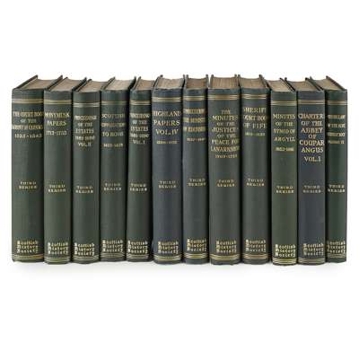 First Series. Edinburgh, 1887-1911, volumes 1-61, original blue cloth gilt; Second Series. Edinburgh, 1911-1920, volumes 1-20, original red cloth gilt; Third Series, volumes 1-55, original green cloth gilt, lacking 53 & 54; Fourth Series. Edinburgh, 1964-1987, volumes 1-23, original light blue cloth; Fifth Series. Edinburgh, 1987-2006, volumes 1-19, original black cloth; Sixth Series. Edinburgh, 2007-2018 volumes 1-13, original red cloth, lacking volume 4, bookplates of Lord Shaw of Dunfermline, William Saunders and or Duncan Shaw; binding of volume 14 of Series 1 slightly dampstained, otherwise very good or fine condition; Heger, Franz Joseph Tablettes des Postes de L'empire D'allemagne et des provinces limitrophes. Mayence, [1764], 8vo, [14], 122, [14], modern black morocco, uncut; Nouvelle listes des Postes Principales, dressée en faveur des Voyageurs, qui part de Strasbourg pour l'Allemagne, La Hollande et la Suisse. Strasbourg: Amand Koenig, 1784. 12mo, [2], 54, black morocco, inscribed "The Dutchess of Buccleugh, 1787" on recto of A1 [Avis]; Poppele, E. Manuel des Postes pour l'Allemagne. Frankfurt, 1831, 8vo, original cloth-backed boards (inscribed "Buccleuch 1839, Vienna, July 10th"); Cullen, Edward Isthmus of Darien Ship Canal. London: E. Wilson, 1853, Second edition, presentation copy from the author, folding frontispiece and 3 maps (2 folding), original red cloth gilt, 12pp. advertisements, head of half-title cut away, lacks part of spine, hinges weak, a quantity
