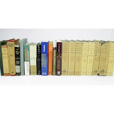 The Public Papers of Franklin D. Roosevelt. New York: Random House/Harper, 1938-1950. 13 volumes, 8vo, original cloth, dust-jackets chipped; Roosevelt, Elliott, editor F.D.R. His Personal Letters. New York: Duell, Sloan and Pearce, 1950. First edition, 2 volumes, 8vo, slipcase; Grey, George Ten Days, a Crisis in American History. New York: Duffield and Green, 1933. 8vo, original card wrappers; Sherwood, Robert E. Roosevelt and Hopkins... New York: Harper & Brothers, 1948. 8vo, original cloth, dust-jacket; and a large quantity of others, sold not subject to return