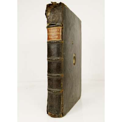 London: Printed by William Stansbye, [1622]. Folio, [60], 453, [3], 453-583, [17] p., engraved title, contemporary calf with gilt "Labor est Voluptas" crest to covers, Den Damph Forest library and Ashley Combe stamps to paste-down endpaper, corners and spine ends worn, single wormhole in fore margin