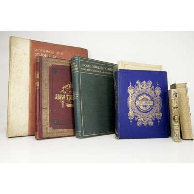 A General Account of West Somerset. Taunton, 1873. 4to, photographic & heliotype plates, original cloth, foot of spine rubbed; Turner, J.M.W. The Works, sketch by James Dafforne. London: Virtue, [c.1880], Folio, engraved plates, original cloth; Jekyll, G. & G.S. Elgood. Some English Gardens. 1920, folio, original cloth; t.e.g.; Leighton, Lord. Drawings & Studies in Pencil, Chalk & other Mediums. London: Fine Art Society, 1898. Large folio, number 82 of 500 copies, plates mounted on card, original quarter vellum, binding somewhat spotted, g.e.; Masefield, J. The Country Scene. 1937. 4to, coloured plates, original cloth; Milner, E. Life in Oberammergau. 1910, 4to, original cloth; Cicognara, Leopoldo Storia della Scultura. Tavole: Prato, 1831. Plate volume only, 90 + 43 engraved plates (? only), folio, half vellum, marbled sides slightly worn; and 2 others (7)