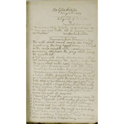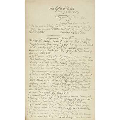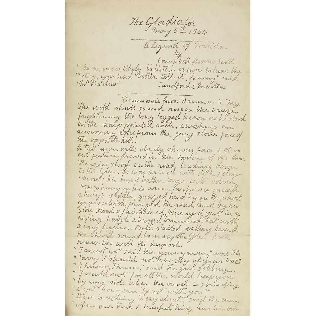 Note: A very rare, privately produced, "Gazette", supposedly printed by "Prutchkin & Co. at Torridon in the County of Ross", one number with statement "N.B. For Private Circulation only" . The quality of the illustrations, and the length of the contributions, increase over the 9 year period of production. The work is almost certainly that of a member of the Darroch family, resident at Torridon between 1873 and 1910. Many of the stories and pieces of "fashionable intelligence" relate to members of the Darroch family and the indices give the names of numerous contributors, including D. Darroch, C.B. Scott, GT.D. Coleridge, H. Troubridge, R.F. Reynard, M.C. Dixon, D. Maclachlan & others, and illustrations by A.A Sykes, M. Coleridge, C.J. Davidson, & others. The text is often highly amusing, and gives great insights into the life of a cultured family in a remote part of the Highlands in the 1880's and 90's. The only reference found onloine to the "Gladiator" is of a single number discovered in a time capsule found in 2015 hidden in the wall of Coire Church, Torridon.