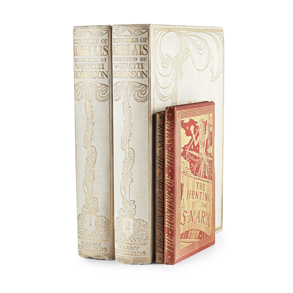 8vo, illustrations by Holiday, original pictorial tan cloth; another copy, original red cloth gilt; Rabelais, François The Works. London, 1904. 2 volumes, illustrations by Heath Robinson, original white pictorial buckram gilt, t.e.g, a little light spotting (4)