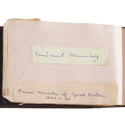 Winston Churchill, Clemantine Churchill, Clement Atlee, Queen Elizabeth II (signed 'Elizabeth' only), and many others belonging to government ministers from the 1930s and 1940s; the second album with a collection of loosely inserted cricketing signatures: England team 1939, Essex team 1939, Yorkshire team 1939 and the West Indies team 1939 (2)