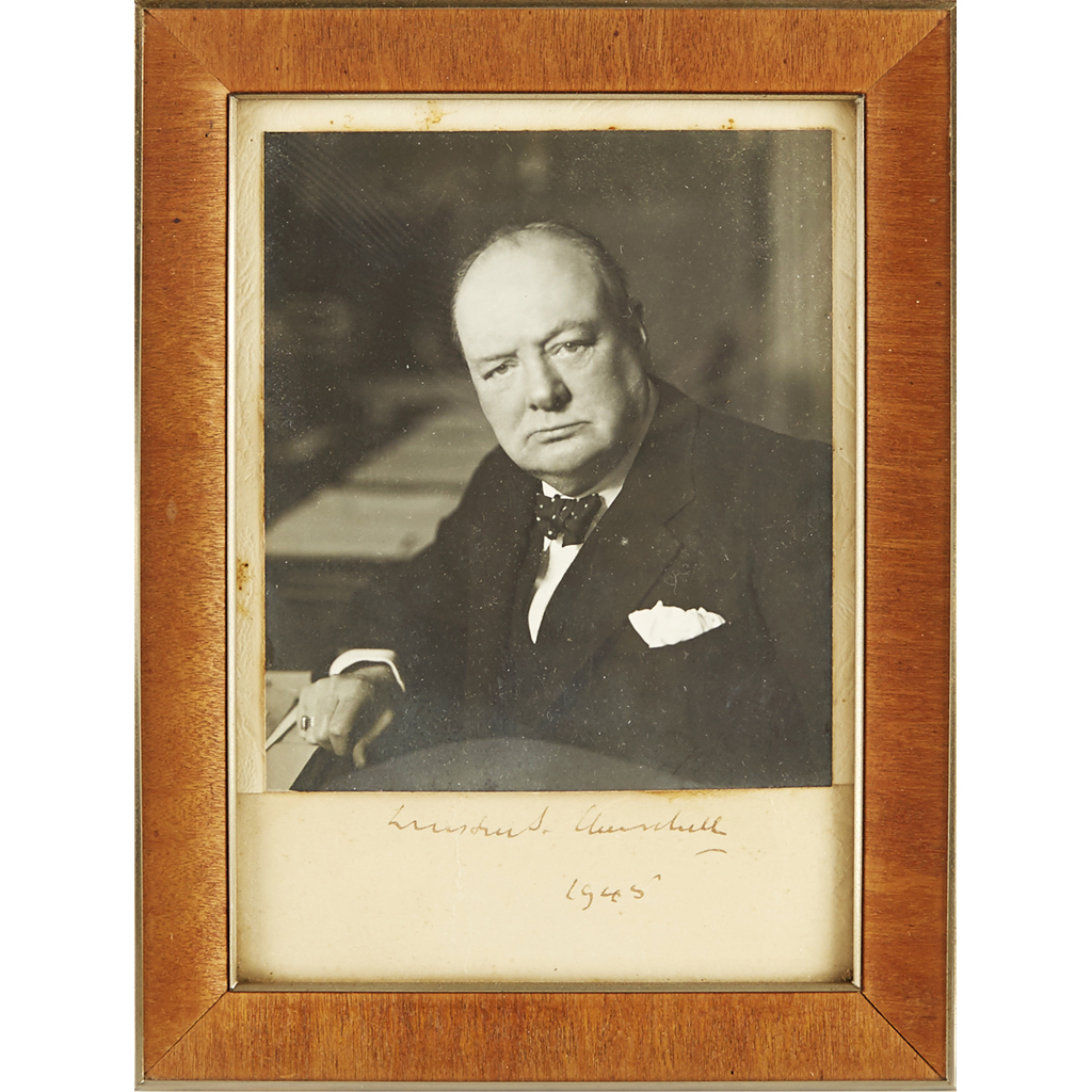CHURCHILL, SIR WINSTON SALEROOM NOTICE: PHOTOGRAPH HAS BEEN TRIMMED AND APPLIED TO A SECONDARY MOUNT SIGNED BY CHURCHILL WITH THE STONEMAN STAMP TO THE REVERSE