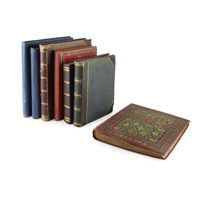 mostly Christmas & New Year, some Birthday, cards in albums with circa 36, 53, 130, 143, 80, 82, 74 cards, some additional coloured cut-outs pasted in, original cloth or half morocco bindings (7)