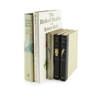 Melbourne, 1956. 2 volumes, 4to, original green quarter morocco, spines gilt; Iredale, Tom Birds of Paradise and Bower Birds. Melbourne, 1950. 4to, original green quarter morocco, spine gilt, dustwrapper; Cooper, W.T. and J.M. Forshaw. The Birds of Paradise and Bower Birds. Collins, 1979. Folio, dustwrapper, slipcase; Forshaw, Joseph M. Parrots of the World. Melbourne: Lansdowne, 1973. First edition, folio, original slate black cloth, dustwrapper (5)