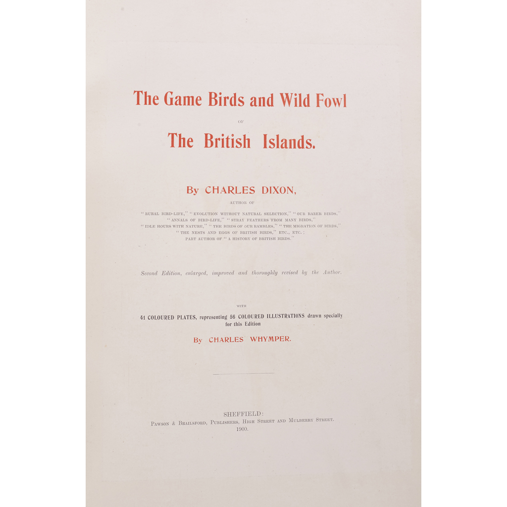 Sheffield: Pawson & Brailsford, 1900. Second edition, folio, large paper copy, 41 mounted chromolithographed plates by Charles Whymper, original pictorial cloth, neatly rebacked with brown morocco, lettered in gilt, raised bands, g.e