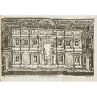 Note: This guide to Vicenza, by the doyen of the Palladian Revival in Italy is almost entirely devoted to the buildings of Palladio and Scamozzi. The folding plates show elevations of Palladian buildings - and there are two plates of the interior of the Teatro Olimpico. There was a second edition in 1780. The author was much ought-after as a cicerone by those cognoscenti on the Grand Tour.