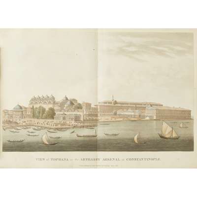 in Europe and Asia, to Constantinople during the years 1809 to 1810. London: J. Cawthorn, 1813. Second edition, 2 volumes, 4to, 2 folding maps and 20 (of 22) plates, lacking plates "Hadrian's Temple", p. 322 and "First Gate of the Seraglio", p. 992, contemporary green half morocco, marbled boards, rubbed, some foxing, some neat pencil and ink annotations and scoring in an early hand, lower hinge of volume 2 broken