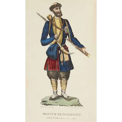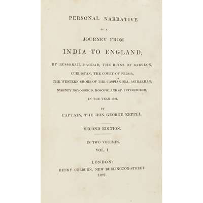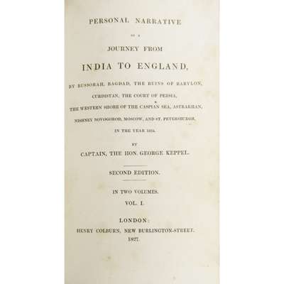 London: Henry Colburn, 1827. 2 volumes, 8vo, 2 hand-coloured frontispieces, folding map, 1 hand-coloured plate (a little trimmed), contemporary half calf, bookplates, without publisher's catalogue, a little internal soiling (2)