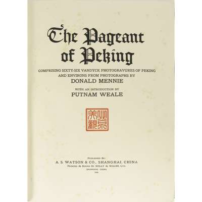Shanghai: A.S. Watson & Co., 1920. First edition, folio, number 470 of 1000 copies, 66 tipped-in photographs, original blue silk covers with gilt lettering, a little silk to upper cover and spine gnawed away, some fading to covers in places, some foxing
