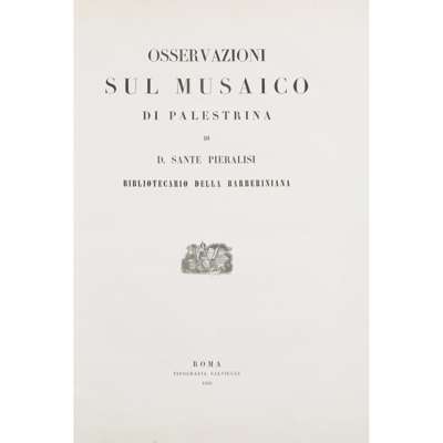 Rome: Tipografia Salviucci, 1858. Folio, 7 plates (including 5 double-page), original printed wrappers, some very minor worming slightly affecting engravings, some slight dust-soiling to covers and flaking to spine, upper wrapper inscribed: "A San Euellenga Riña monsig. Federico de Falloux, Il Principe di Salestrina"