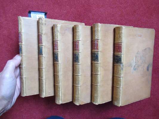 London: J. Hughs, 1765. 6 volumes, third edition, 8vo, half-title in each volume, contemporary calf gilt with morocco gilt labels to spine in red and black, a little scuffing to covers, cover of volume v slightly soiled, bookplates of Dudley Cosby, 1st Baron Sydney and J.O. Edwards (6)