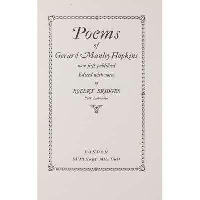 London: Humphrey Milford, [1918]. First edition, one of 750 edited by Robert Bridges, 2 portraits, & 2 double-page facsimiles, original quarter cloth lacking paper label to spine