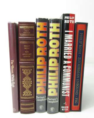 Portnoy's Complaint. J. Cape, 1969. First UK edition, 2 copies, 1 signed, dustwrappers, 1 price clipped; The Breast. New York: Holt, Rinehart and Winston, 1972. First edition, dustwrapper; Zuckermann Unbound. New York: Farrar, Strauss and Giroux, 1981. First edition, number 333 of 350 copies, original red cloth, slipcase; The Anatomy Lesson. Franklin Library 1983. Limited First edition, signed by the author, brown morocco gilt, g.e.; I Married a Communist. Boston: Houghton Mifflin, 1998. First edition, dustwrapper (6)