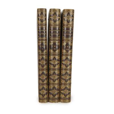 Birmingham: John Baskerville, 1773. 3 volumes, large 8vo, (245 x 148mm.) "the Fifth edition", engraved frontispiece, engraved vignette to titles, engraved head-pieces, later panelled brown morocco gilt by Riviere, spines gilt, t.e.g., armorial crest on upper cover of the Earl of Derby, very slight rubbing to joints (3)