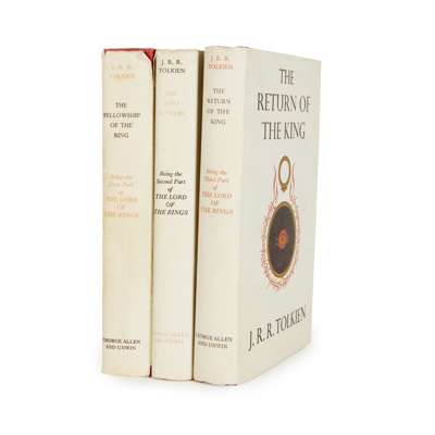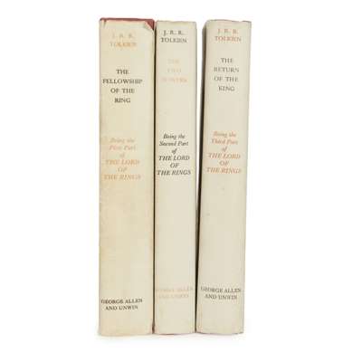 The Fellowship of the Ring. London: George Allen & Unwin Ltd., November 1955. First edition, fourth impression; The Two Towers. London: George Allen & Unwin Ltd.,1955. First edition, second impression; The Return of the King. London: George Allen & Unwin Ltd.,1955. First edition, first impression; all 8vo, original red cloth gilt, dust-jackets not price-clipped, a little soiling and a few small chips and tears to jackets (3)