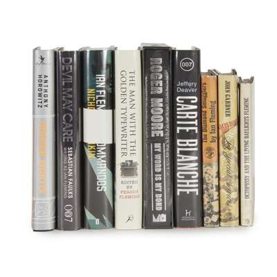 The Diamond Smugglers. London: Jonathan Cape, 1957. First edition, 8vo, original black cloth, dust-jacket price-clipped; [Idem] Octopussy and the Living Daylights. London: Jonathan Cape, 1966. First edition, 8vo, original brown cloth gilt, dust-jacket ptice-clipped; Gardner, John For Special Services. London: Jonathan Cape/Hodder & Stoughton, 1982. First edition, 8vo, original black cloth gilt, dust-jacket not price-clipped; Moore, Roger My Word is My Bond. Michael O'Mara, 2008. 8vo, signed copy in black slipcase with motif of Moore to upper cover, sealed in original wrapping, one of 1000; Faulks, Sebastian Devil May Care. London: Penguin, 2008. First edition, signed by the author at the Hatchard Christmas Customer Evening, dust-jacket; Deaver, Jeffery Carte Blanche, a James Bond Novel. London: Hodder & Stoughton, 2011. First edition, 8vo, number 793/1500 signed copies, dust-jacket; Rankin, Nicholas Ian Fleming's Commandos.London: Faber and Faber, 2011. First edition, signed, dust-jacket; Fleming, Fergus The Man with the Golden Typewriter., Ian Fleming's James Bond Letters. London: Bloomsbury, 2015. First edition, dust-jacket, signed by author on title-page; Horowitz, Anthony Trigger Mortis, London: Orion, 2015. First edition, 778/1000 signed copies, dust-jacket (9)