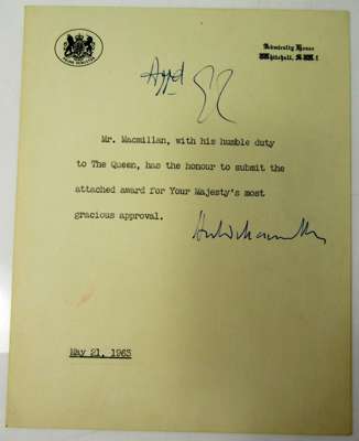 ELIZABETH II, QUEEN. TYPED LETTER SIGNED FROM HAROLD MACMILLAN