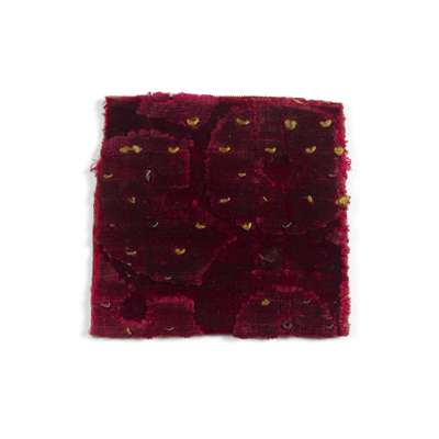 Note: This piece of cloth was formerly in the possession of the Ray family at Tannington in Suffolk. During the coronation Elizabeth changed her robes twice. Her Parliament robe was of crimson velvet with a fur of powdered ermines. Her Robes of state were of purple velvet, consisting of a kirtle and a surcoat 'made round to the shoe with tabard sleeves' and a mantle with a long train. (Purchased Keys Auction, Norfolk, 21/03/2003, lot 1145)