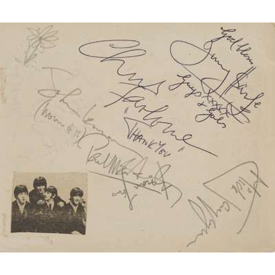 THE BEATLES, ALBUM PAGE OF SIGANTURES OBTAINED AT THE BBC, MANCHESTER