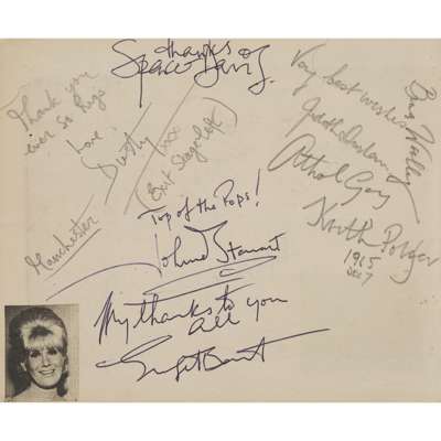 Mick Jagger, Brian Jones; and on the reverse by Dusty Springfield, Spencer Davis & others, album leaf, 121 x 147mm., small closed tear not affecting signatures