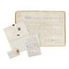 [née Elizabeth Pakenham (1769-1851)], thanking her for her kind note of the 9th 'and for your congratulations upon my son Charles' Marriage, which is highly satisfactory', 1 page, with integral blank, 8vo, together with a franked Penny Red envelope with wax seal, addressed to Mrs Stewart in Dublin, clearly in the Duke's hand but with an earlier postmark from February 1843; Wellesley, Arthur, Duke of Wellington Autograph letter signed, to Miss Georgina Harcourt, politely declining an invitation to luncheon, with integral address leaf with remnants of red wax weal and Penny Black postage stamp, some writing slightly obscured where previously mounted in an album; Wellesley, Arthur, Duke of Wellington. Document signed in the name of George IV, October 30th 1831, signed by The Duke of Wellington, Lords Bathurst and Cholmondely & the Archbishop of Canterbury in their capacity as "The Lord's Justices", raising Major General John Barlow to be a Lieutenant General in the Army, printed document with manuscript insertions, laid on a larger piece of card, folio (3, & envelope)