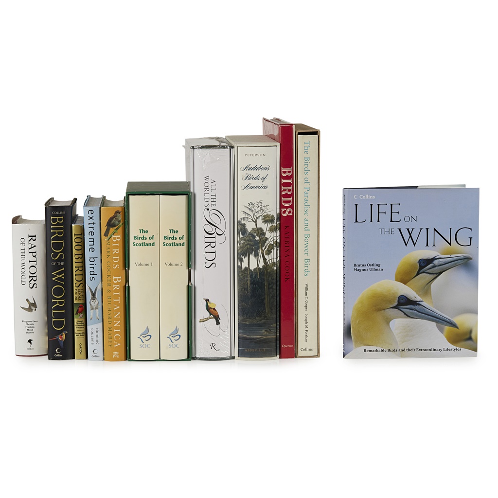 Audubon's Birds of America. New York: Abbeville Press Publishers, 1981. Baby elephant folio, dust-jacket, slipcase; LeClerc, Georges-Louis, Comte de Buffon All the World's Birds. Rizzoli, 2008. Folio, dust-jacket, slipcase, shrink-wrapped; Forrester, Ron & Ian Andrews The Birds of Scotland. Aberlady: The Scottish Ornithologists' Club, 2007. 2 volumes, 4to, slipcase; Cooper, William T. & Joseph M. Forshaw The Birds of Paradise and Bower Birds. Sydney: Collins, 1977. Folio, dust-jacket, slipcase; Cook, Katrina Birds. London: Quercus, 2007. Folio, dust-jacket; and 6 others