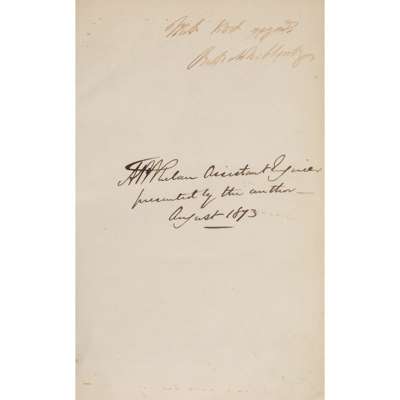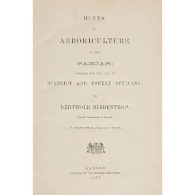 Lahore: Central Jail Press, 1873. 8vo, illustrated throughout with hand-pasted lithographs, inscribed by the author to ?, Assistant Engineer, August 1873, with the author's signature also to the front free endpaper, original green cloth with paper label to upper cover, some pencil annotations throughout, a little browning from glue, hinges slightly split
