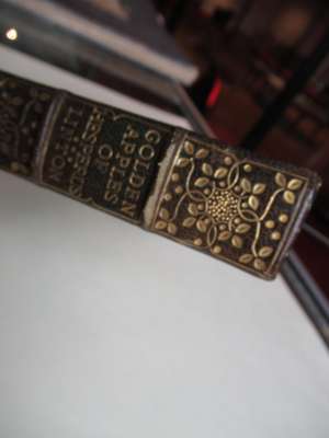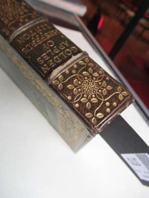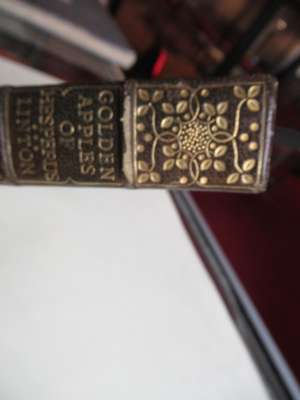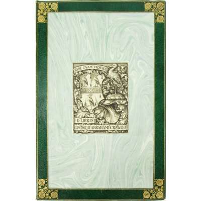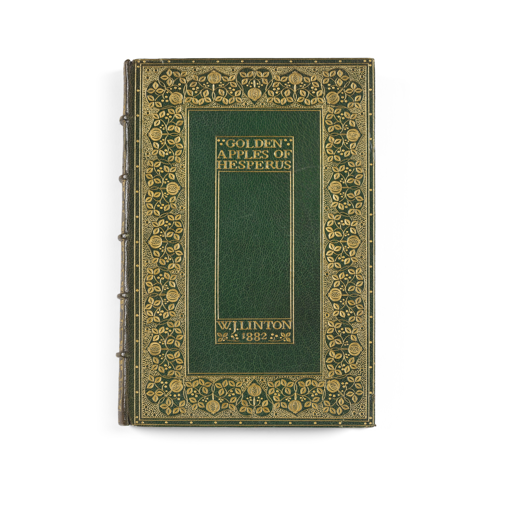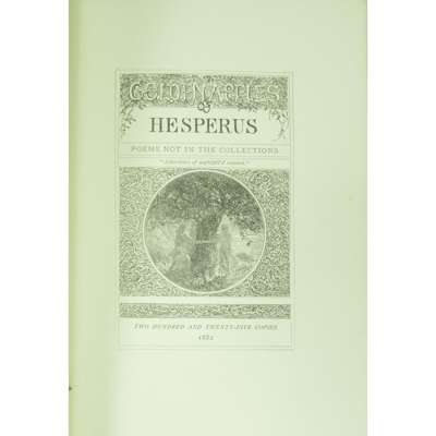 Golden Apples of Hesperus. Appledore Private Press: 1882. First edition, 8vo in fours, no.218 of 225 copies signed by the author, contemporary green morocco decorated in the arts & crafts style with panelled gilt tooling with branches of poppies, spine banded in six compartments with gilt foliage motifs, gilt doublures with poppy motifs over green marbled endpapers signed 'B.C.D. 1902', slight wear to the corners of cover, bookplate to paste down endpaper, three newspaper reviews paste down to flyleaf, slight discolouration to end papers