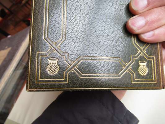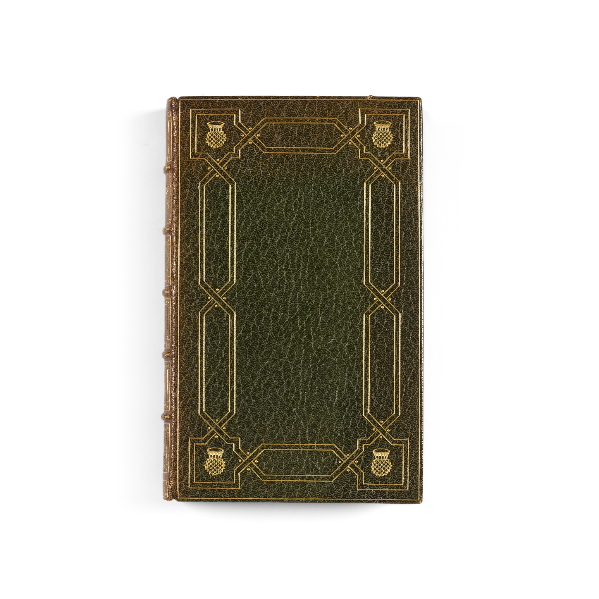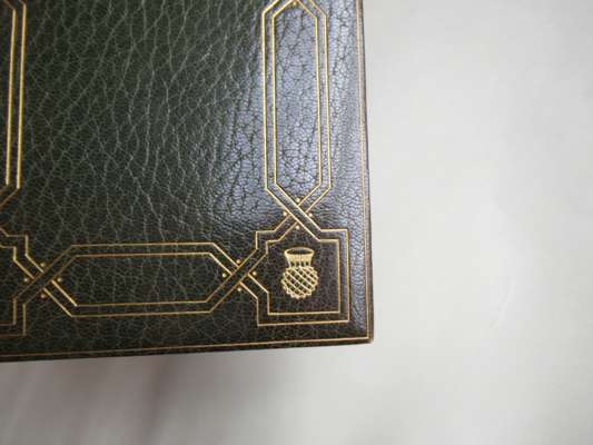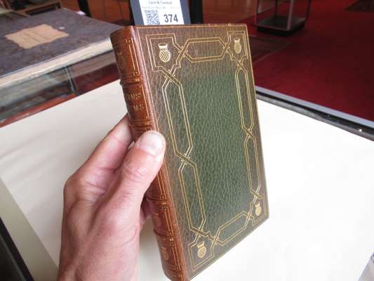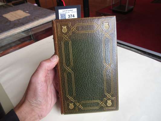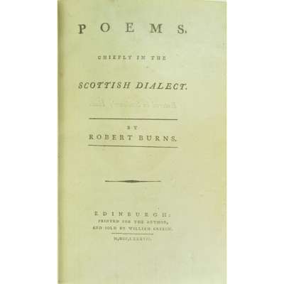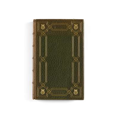 Poems Chiefly in the Scottish Dialect. Edinburgh: printed for the author, 1787. Second [First Edinburgh] edition, 8vo, engraved portrait frontispiece, first issue with "skinking" on p. 263, contemporary green morocco with gilt border and four thistle-heads in the corners, spine banded in six compartments, gilt doublures with corner thistle motifs over marbled endpapers signed 'Bayntun.Binder.Bath. Eng.', corners bumped, very small wear to edges, spine sunned, [ESTC T91547]