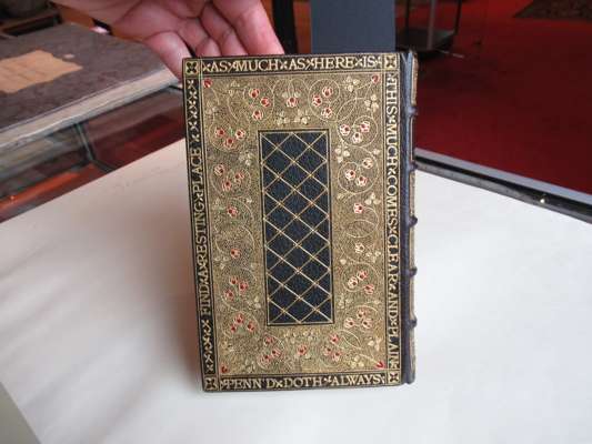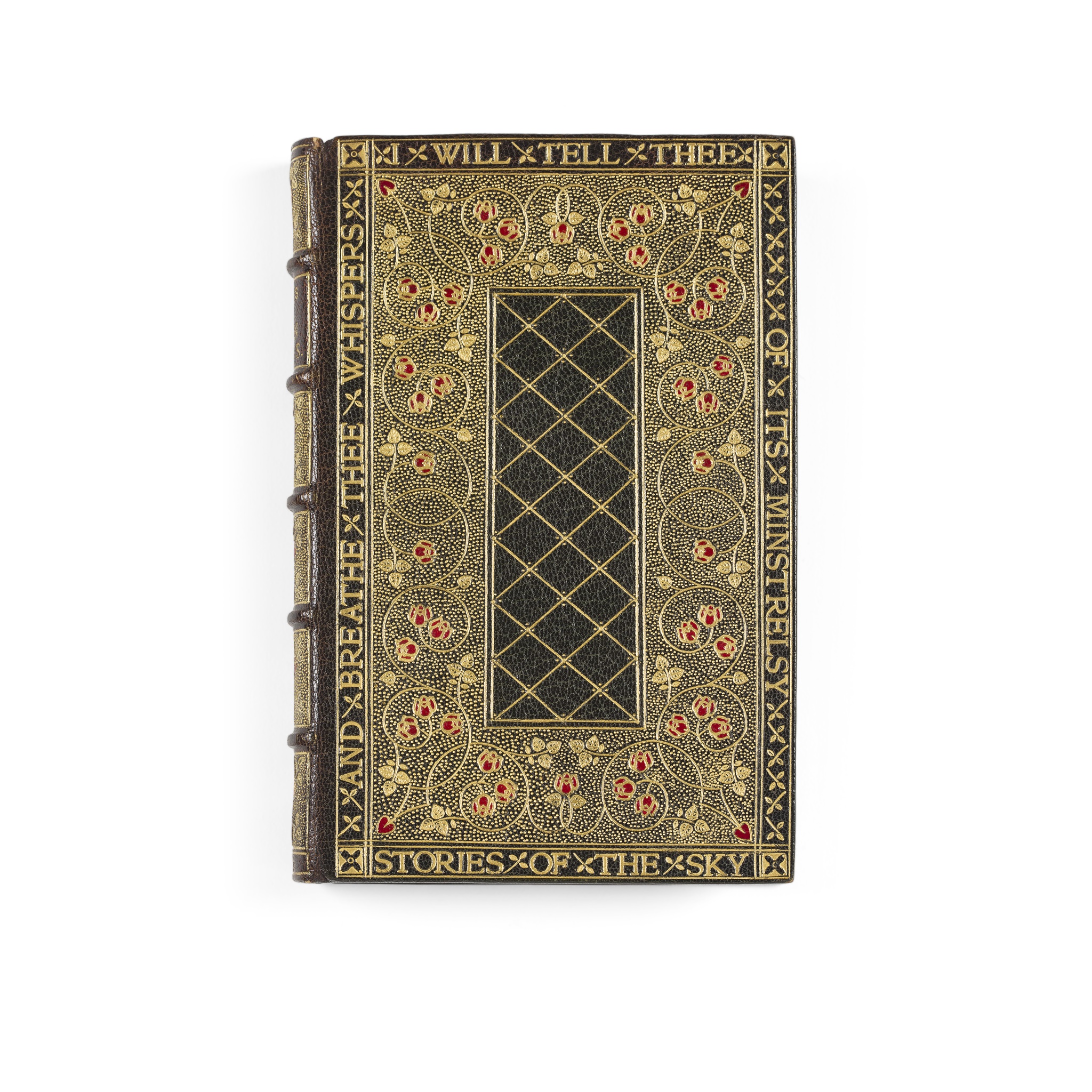 London: George Bell & Sons, 1901. 8vo, contemporary green morocco with very elaborate panelled gilt decorated in the arts & crafts style with intricate tooling depicting rose vines, endpapers covered with green and red morocco gilt, tooled with blossoming roses, red watered silk end papers, bookplate to verso of free endpaper