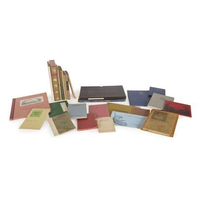 Essays of Elia. East Aurora, NY: The Roycroft Shop, 1899. 8vo, number 201 of 970 copies signed by Elbert Hubbard, original brushed calf, covers becoming detached; Johnson, William Savage The Poetry of William Savage Johnson. Meriden, Conneticut: The Bayberry Hill Press, 1964. 4to, number 40 of 50 copies, original quarter cloth over marbled boards, glassine wrapper, slipcase, label and portrait detached; Johnson, Foster Macy The King, The Pirate and The Maid. Meriden, Conneticut: The Bayberry Hill Press, 1864. 4to, number 172 of 175 copies; Stevenson, Robert Louis An Apology for Idlers. Westport, Conneticut: The Redcoat Press, 1951. 8vo, one of 185 copies; Corbiere, Tristan Poems. The Banyan Press, 1947. 8vo, number 962 of 1060 copies; Poppino, Kathryn Kathryn Poppino. Oneonta, NY: Swamp Press, 1979. Original red printed covers; Lovelace, Richard Lucasta Et Cetera. Mount Vernon, NY: The Golden Eagle Press, 1948. 8vo, one of 1960 copies, slipcase; Kent, Henry W. St. Distaff's Day. White Plains, NY: The Froben Press, 1938. 12mo, one of 750 copies; Thomajin, P.K. Kidaze. Continental, Ohio: Centaur Press, 1961. 8vo, number 107 of 300 signed copies; Kent, Henry Watson 50 Books of the Year, 1942. Blue cloth gilt; Scollard, Clinton Sprays of Shamrock. Portland, Maine: The Mosher Press, 1914. 8vo, one of 150 copies, gift inscription from the author to free-endpaper; Risk, R.T. Why Potocki? Francestown: Typographeum, 1981. 8vo, number 12 of 100 signed copies; Duensing, Paul Hayden A Portfolio of Typographic Paradigms. Kalamazoo: Paul Hayden Duensing, 1970. A collection of loose sheets in original folder; and 12 others, full list available