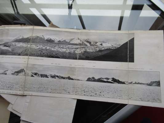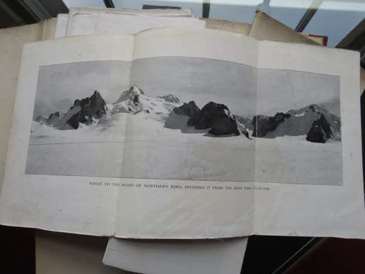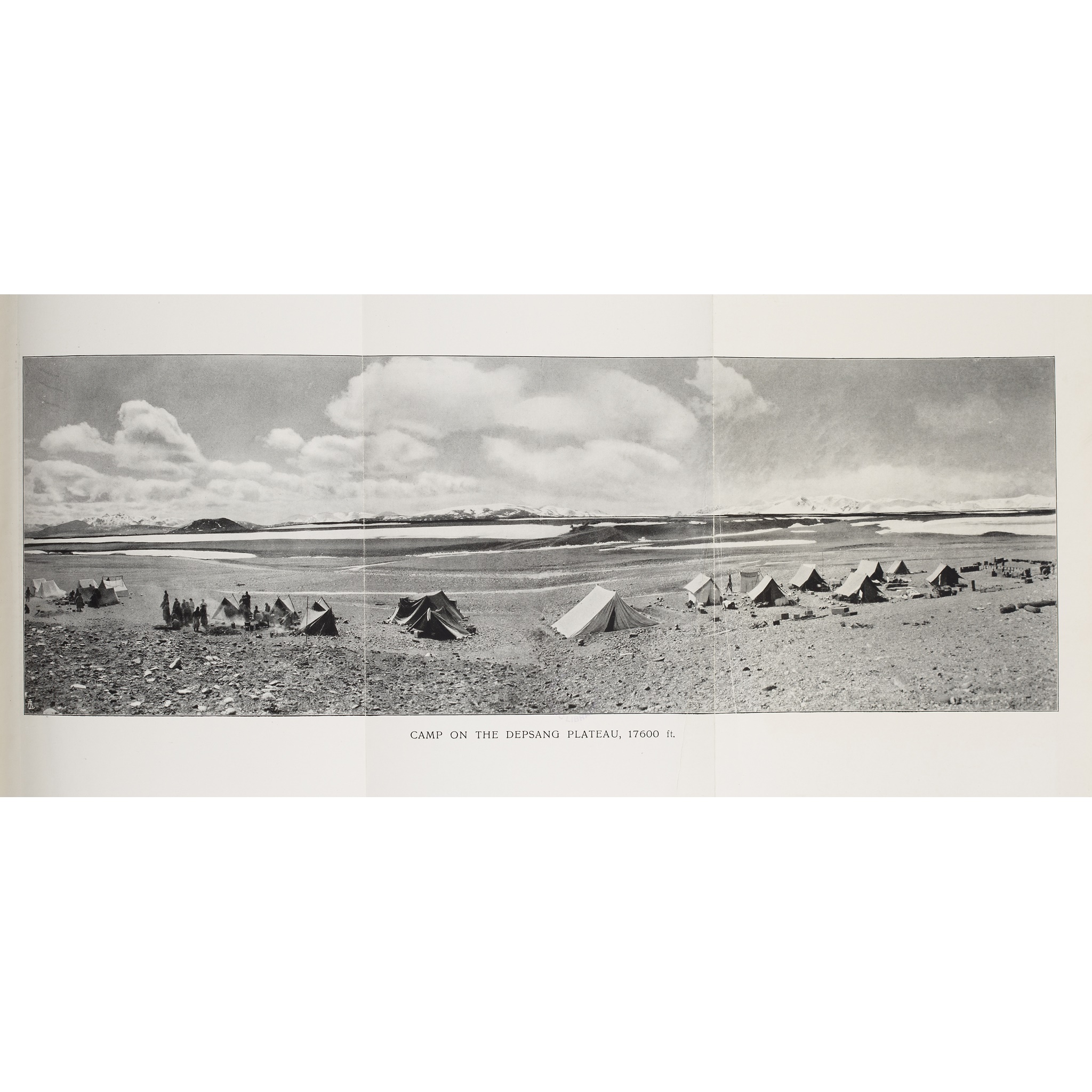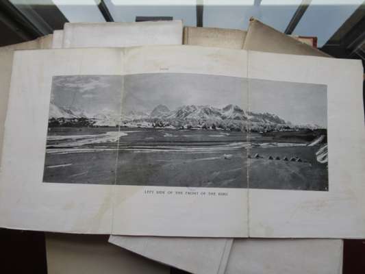 London: Edward Arnold & Co., 1932. 4to, frontispiece, 8 loose linen-backed folding maps and panoramic plates in folder at rear of the work, 2 colour plates, 7 folding plates and 1 double-page map (18 plates, panoramas and maps in total), original red cloth gilt, bookplate and many stamps of Manchester Public Libraries, some wear