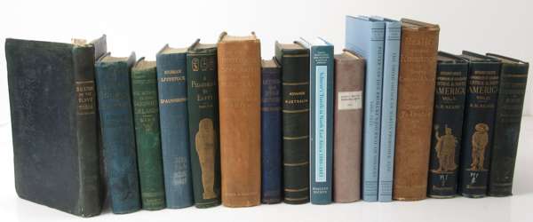 The African Slave Trade. 1839. Second edition, 8vo, original cloth, rubbed; Bird, Isabella The Hawaiian Archipelago. 1880. 8vo, original cloth, rubbed; Dufferin, Earl of Letters from High Latitudes. 1879. 8vo, original pictorial blue cloth; Johnston, James. Reality versus Romance in South Central Africa. 1893. 8vo, original cloth, rubbed; Finch-Hatton, H. Advance Australia! 1885. 8vo, green half morocco; La Fleur, J.D. Pieter van den Broecke's Journal of Voyages to Cape Verde, Guinea and Angola 1605-1612. 2000, dust-jacket; McDermott, J. The Third Voyage of Martin Frobisher to Baffin Island 1578, 2001, dust-jacket; Keane, A.H. Central and S. America. 1901, 2 vol., original cloth, library stamp on page edges; and 6 others (16)