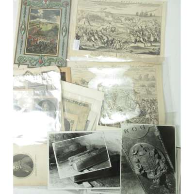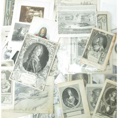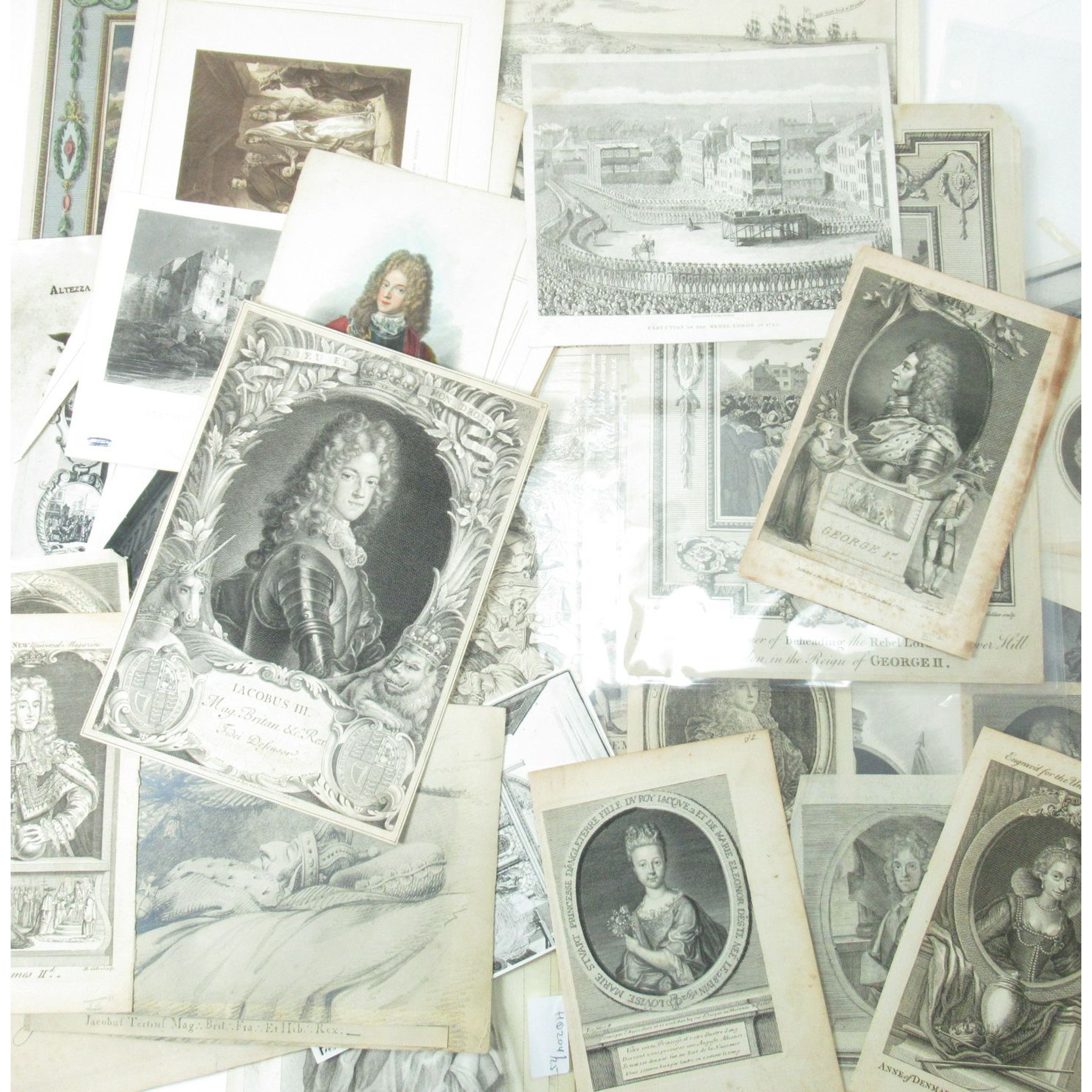 C. Corbet, May 7th 1746., engraving, 265 x 300mm., two short tears at title; Culloden Chace, or Rebellion run-down, engraving, 216 x 316mm.; 34 engravings, 18-19th centuries, chiefly portraits; and a collection of photographs, some of original paintings in private collections, but also of marble memorial to James III, former Stuart Palace in Florence, 4 photographs of the leaden coffins of the Old Pretender, Charles Edward Stuart and Cardinal Duke of York exhumed in the crypt of St. Peters, August 1938 (quantity)