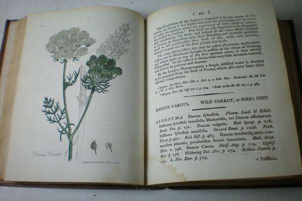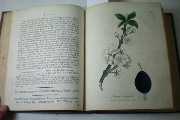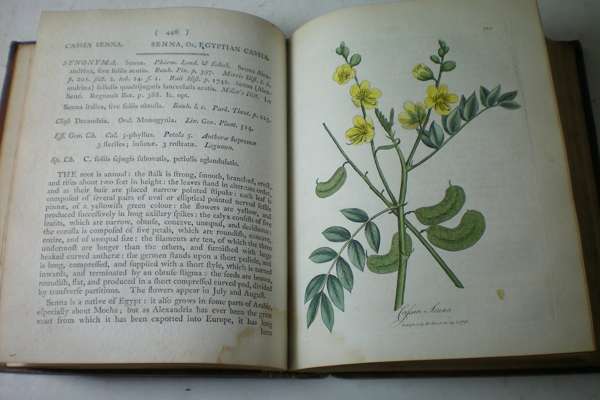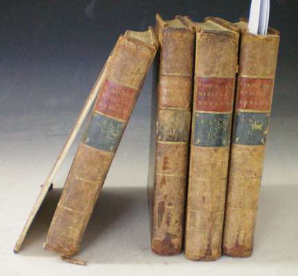 Medical botany. London: for the author, 1790. 4 volumes, small 4to, 274 hand-coloured plates, contemporary calf, some spotting and browning, several plates bound upside down, colouring of several plates smudged, dampstaining affecting some plates and text in volume 3, very worn, some covers detached