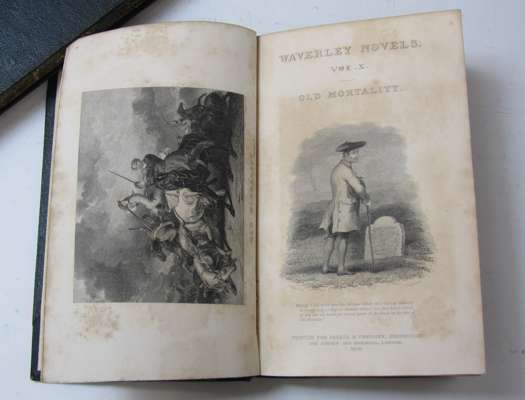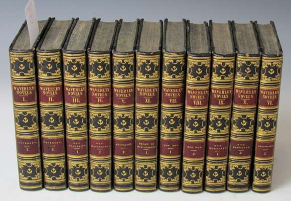 The works. Edinburgh: Cadell & Co., 1829-34. 48 volumes, 12mo, engraved frontispieces and titles, contemporary half calf, spines gilt, morocco labels; and 2 volumes of Anecdotes, frontispieces and titles rather spotted (50)