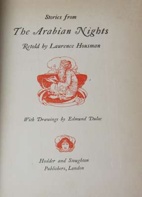 Stories from the Arabian nights. London: Hodder & Stoughton, 1907. 8vo, 50 tipped in colour plates, full morocco gilt extra by the Cottage Bindery, copy of frontispiece onlaid to upper board, turquoise stones inlaid to boards and backstrip,a.e.g., corresponding slipcase by binders, original cloth bound in, a fine copy
