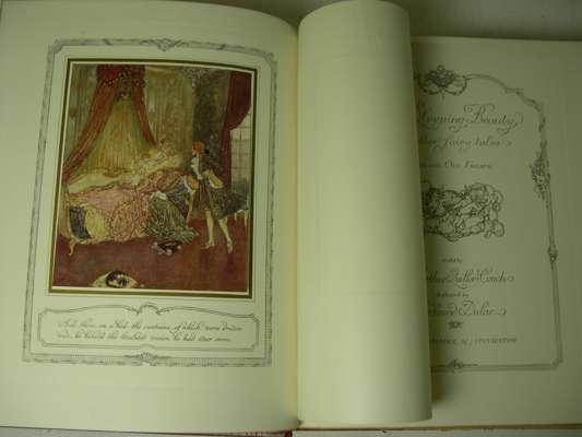 The sleeping beauty and other fairy tales. London: Hodder & Stoughton, [1910]. Edition de luxe, number 581 of 1000 copies signed by the artist, 30 tipped in coloured plates, brown morocco gilt, t.e.g., head of spine rubbed