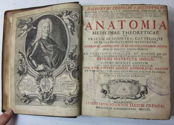 Anatomia medicinae theoreticae et practicae ministra. Innsbruck: J.J. Cremer, 1740. 4to, engraved portrait, 45 folding engraved plates, contemporary calf, library stamp to title, some spotting, rubbed, joints splitting