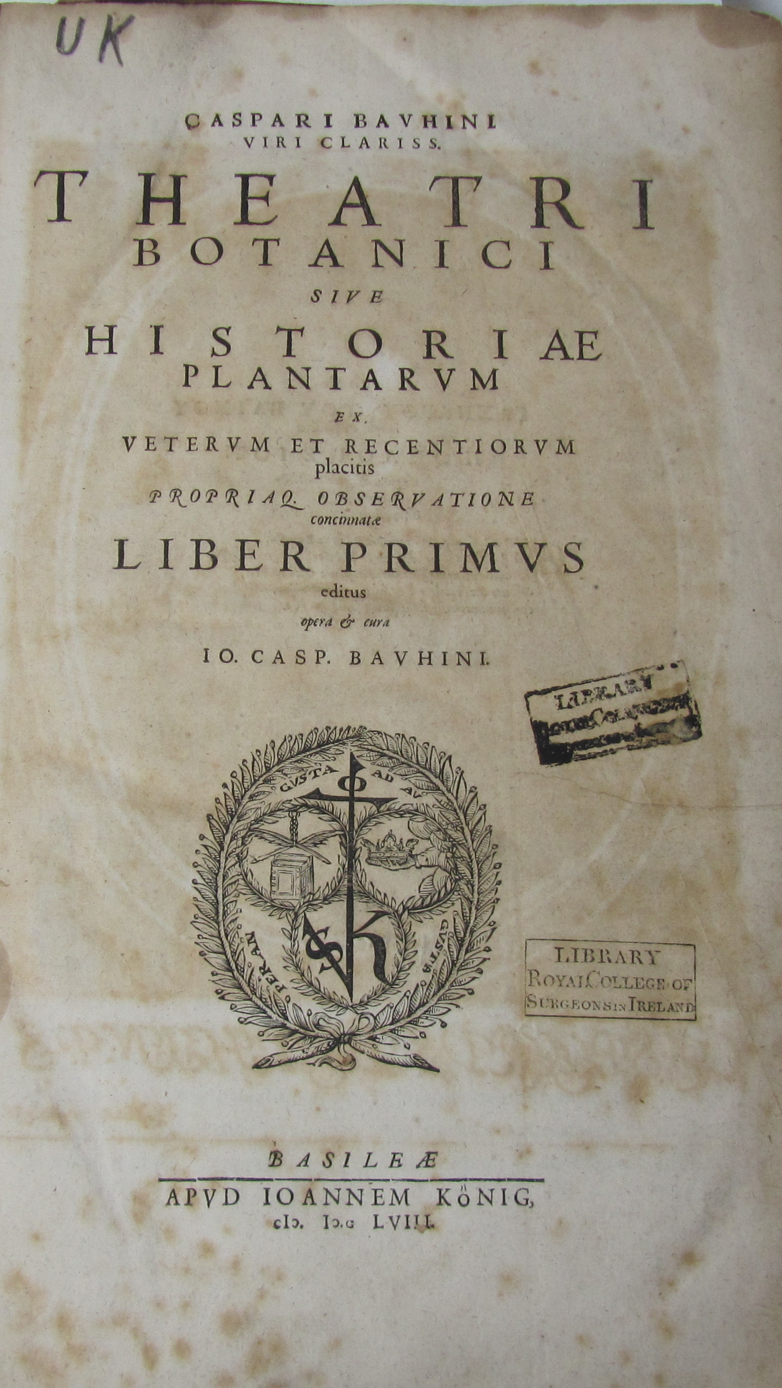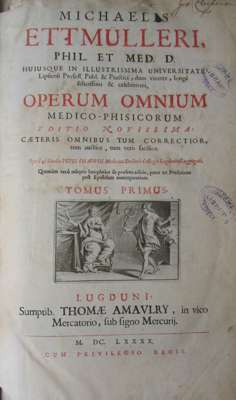 Theatri botanici sive historiae plantarum... Basel: Johann Konig, 1658. Folio, portrait frontispiece, woodcuts in text, printer's device to title, library stamps, staining and foxing throughout, contemporary calf, worn, lacking backstrip, boards loose, leaves loose; Ettmüller, Michael Operum omnium. Lyon: Thomas Amaulry, 1690. New edition, folio, 2 volumes, half titles, titles printed in red and black, vignettes, library stamps, ink inscriptions across titles, foxing throughout, contemporary calf, worn, boards loose (3)