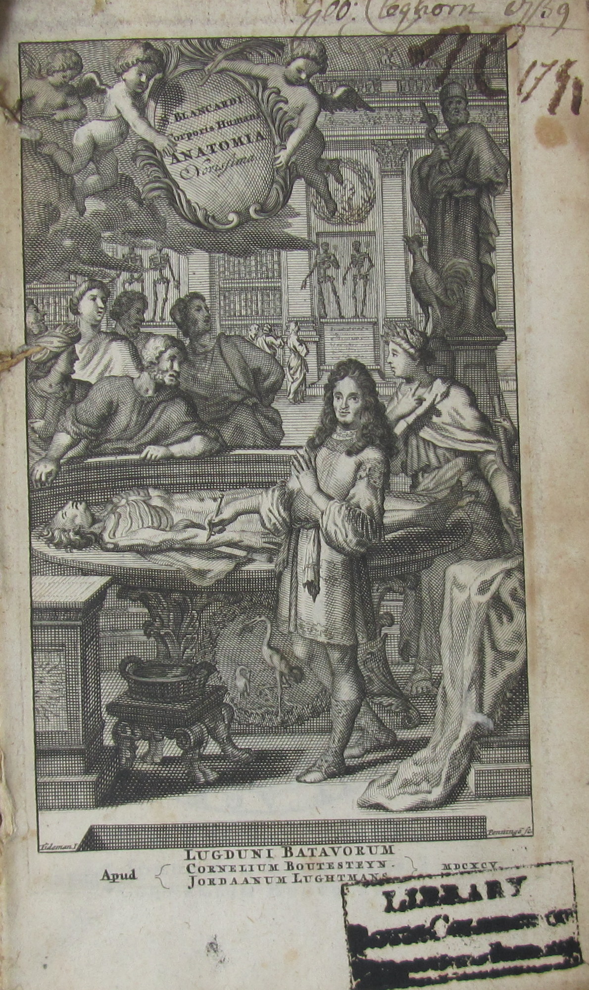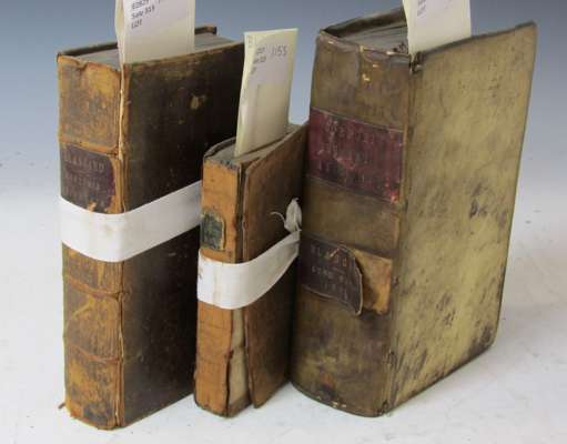 Anatomia reformata.... Leiden: J. Luchtmans, 1687. 8vo, portrait frontispiece, engraved title, 51 engraved plates, library stamps, contemporary calf, worn, boards loose [upper board and frontispiece loose]; Blancard, Stephen Anatomia reformata... Leiden: J. Luchtmans, 1695. 8vo, engraved title, portrait, 83 [of 84] plates, lacking plate XII, library stamps, contemporary vellum, upper inner hinge detached, soiled, later labels, extensive browning to interior; [Ucay, Gervais] - Blancard, Stephen A new method of the curing of French-pox. London: John Taylor, 1690. 12mo, library stamps, lacking [36]p. at rear, contemporary calf, worn, boards loose, bookplate [as per Wellcome copy] [Wing N672, Wellcome Library 14326277] (3)