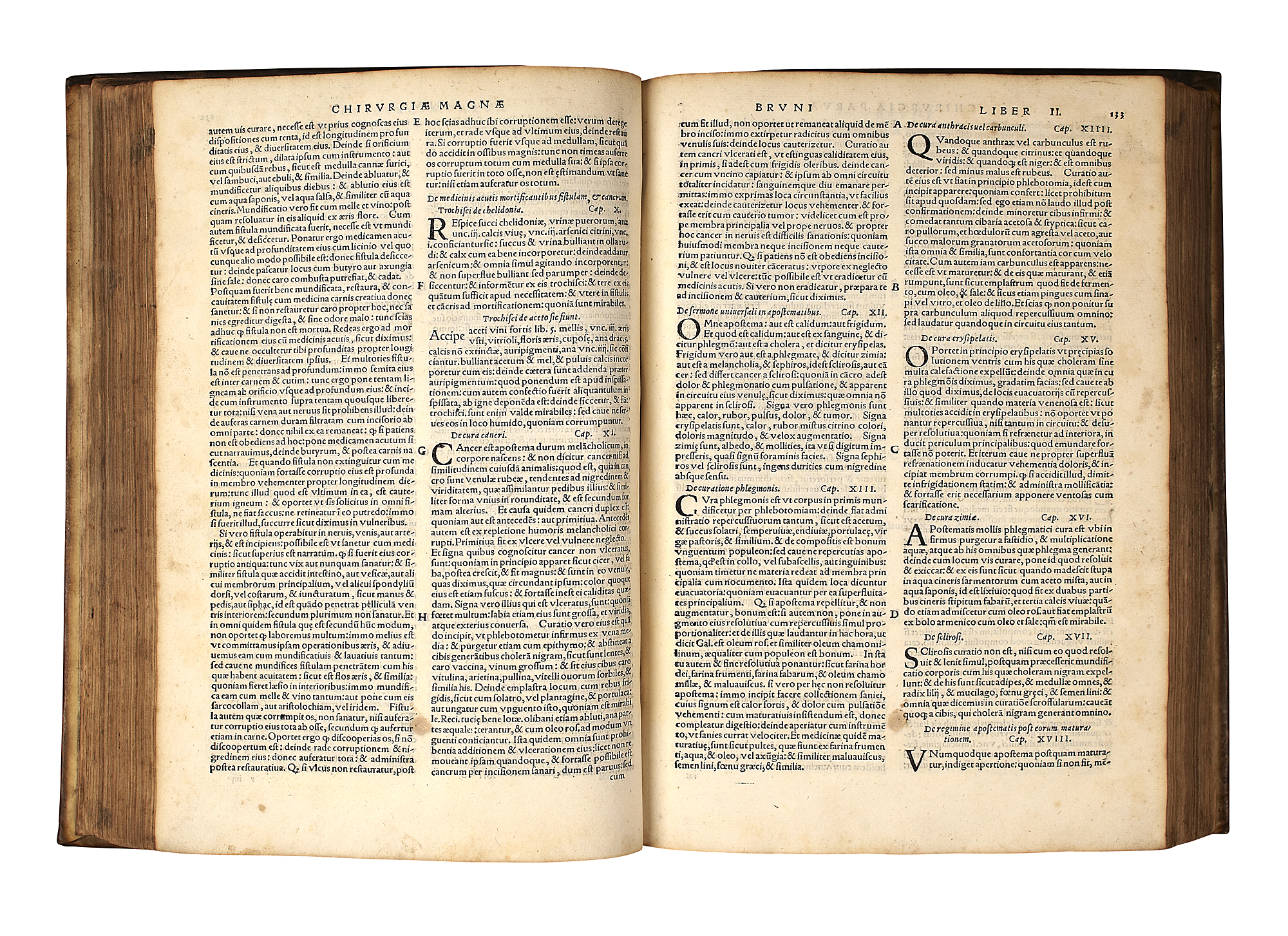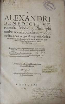 Ars chirurgica. Venice: Heirs of Lucantonio Giunta, 1546. Folio, I6 ++4 a-z8 A-Y8 ZZ8 AAA6 BBB6, blank BBB6, printer's device to title and colophon, woodcuts in text, library stamps, foxing to edges, contemporary vellum, hinges splitting, later labels