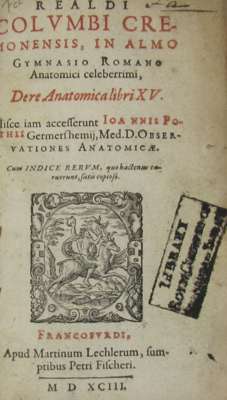 De re anatomica libri XV. Frankfurt: Martin Lechler, 1593. Fifth edition, 8vo, *4 A-Z8 Aa-Hh8 Ii4 Kk-Ll8 Mm4, printer's device to title, library stamps, gutta percha deteriorated, several leaves loose, *2 torn at inner hinge [no loss], panelled calf, crudely rebacked