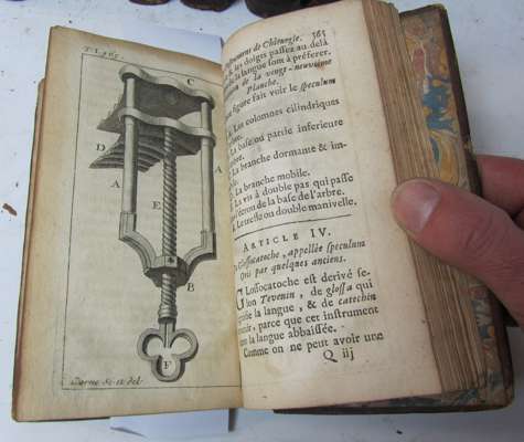 Nouveau traité des instrumens de chirurgie. Paris: Huart, 1727. Second edition, 2 volumes, 12mo, 66 engraved plates, contemporary calf, dampstained, some discolouration, very worn, covers detached; and 29 other French eighteenth-century medical books, mostly dampstained and worn, most with library stamps (31)